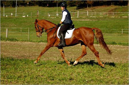 Dieses Pferd fällt mit hochaufgerichteten 4 Gängen und seiner sensiblen etwas zurückhaltender Art auf.